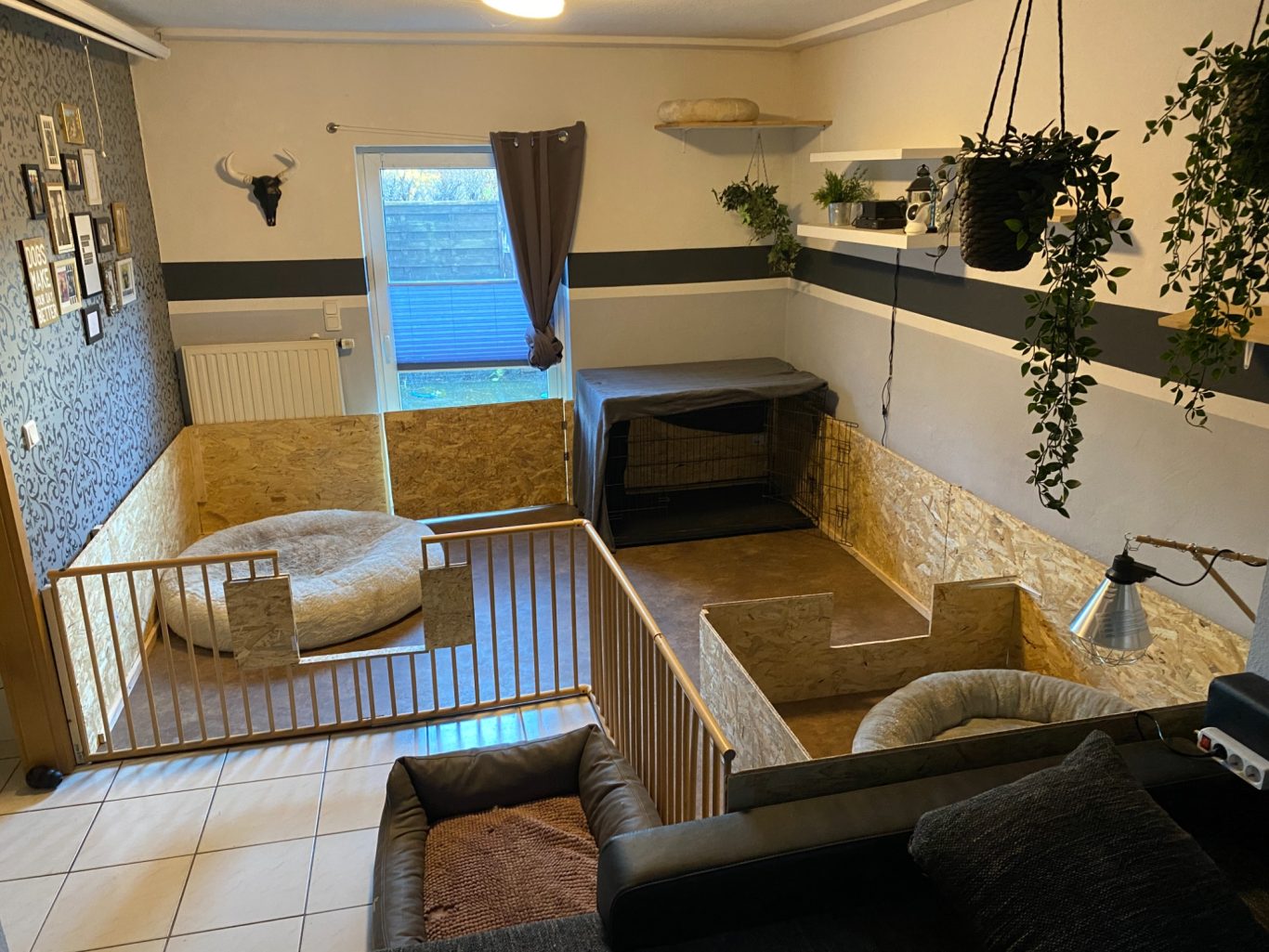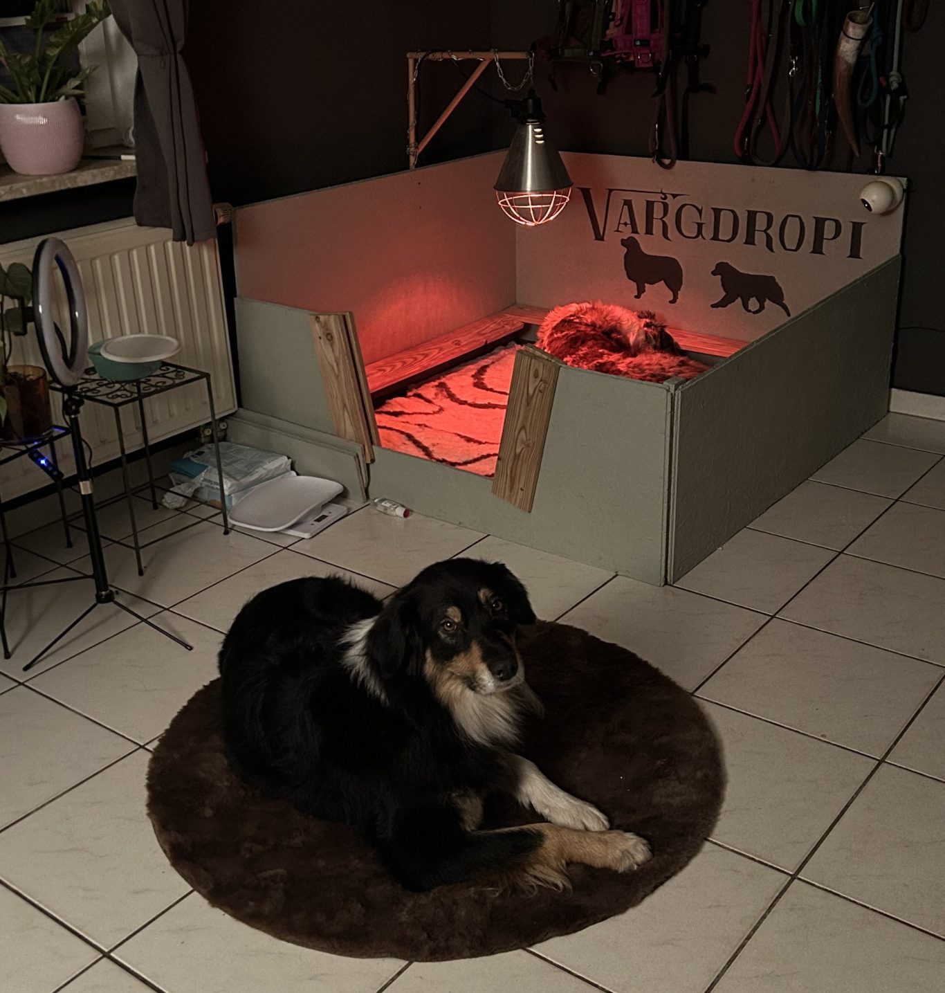 Unsere Welpen kommen bei uns im Wohnzimmer, in mitten des Rudels, zur Welt. Dort steht eine Welpen-Wurfkiste, in der sie die ersten Wochen ihres Lebens aufwachsen, bis sie laufen können und mehr Platz benötigen. Dann dürfen die kleinen in den restlichen, extra für sie aufgebauten, Auslauf umziehen. Sobald die kleinen mit ca. 2 Wochen die Augen und Ohren öffnen und beginnen ihre Umwelt wahrzunehmen, bekommen sie verschiedene Spielzeuge zum entdecken in die Wurfkiste gelegt.