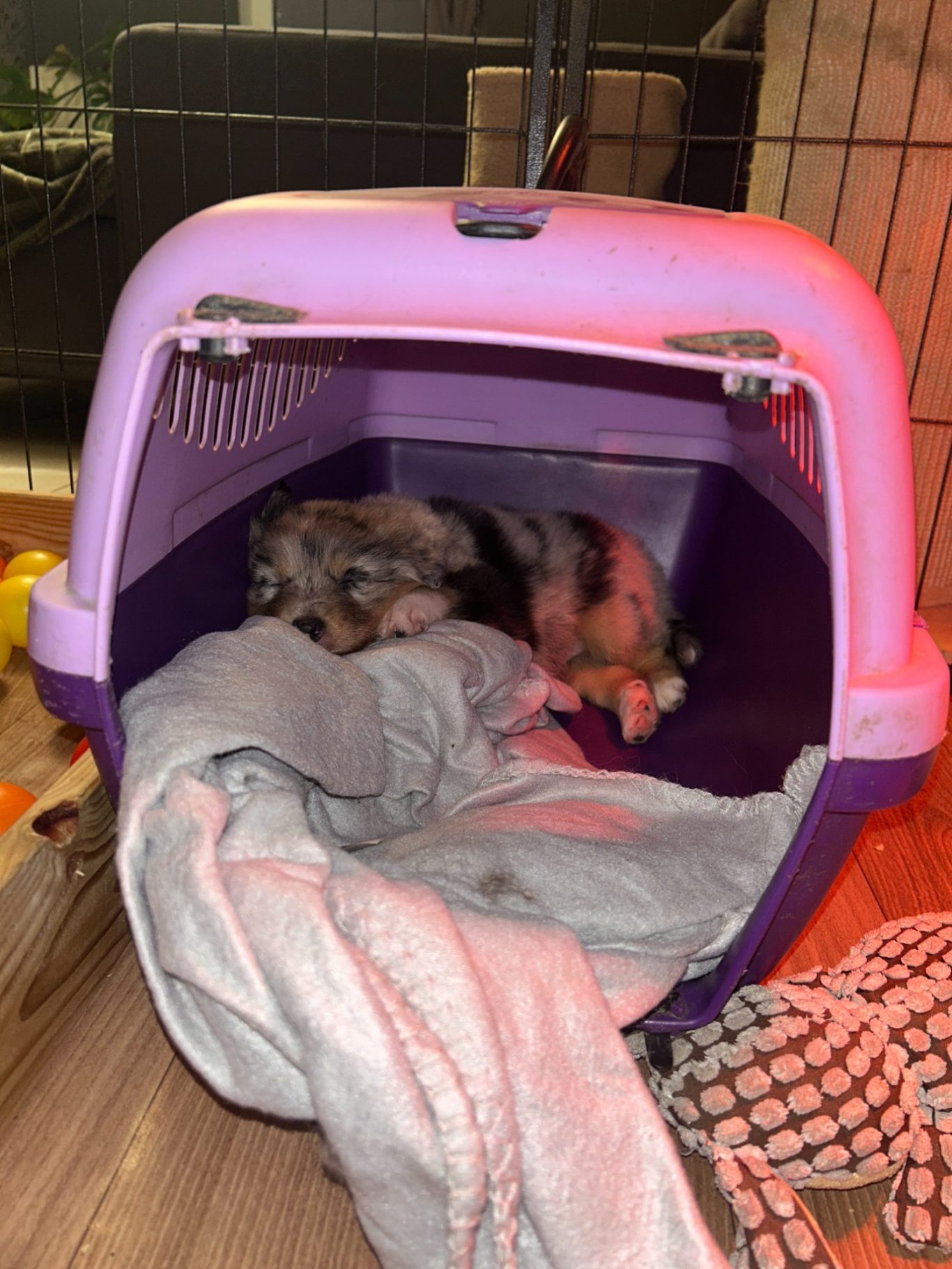 Sie bekommen früh bereits eine Transportbox in den Auslauf, in dem sie von uns zum Tierarzt und auf Ausflügen transportiert werden. Außerdem lernen die kleinen von Anfang an zuverlässig ihr Welpentoilette zu benutzen. Zu diesem Zeitpunkt kommen auch langsam die Milchzähne durch und wir fangen an sie mit hochwertigem Trocken- und Nassfutter, sowie Barf zu zu füttern. Unsere Welpen, sowie unsere erwachsenen Hunde bekommen das Trockenfutter von Irish Pure.